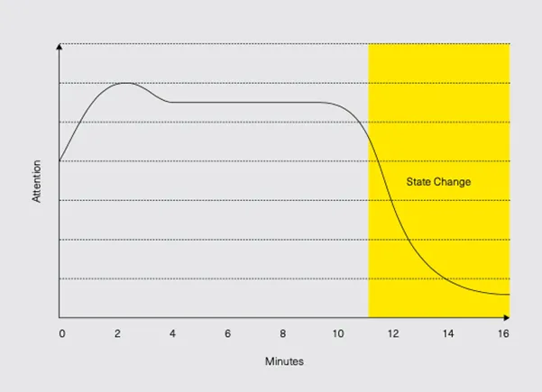 You don’t have to get super scientific to affect a state change either. It’s simply when you introduce a shift in your presentation to create interest. It could be as simple as sharing an interesting story or relevant anecdote if the rest of your presentation is packed full of facts.