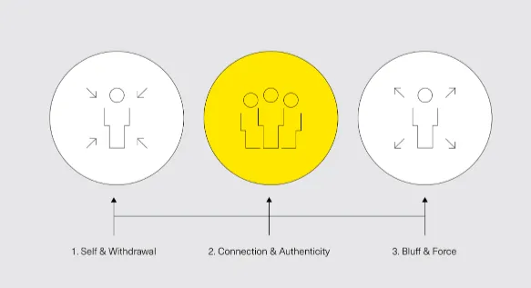 Let’s skip to the third circle: Bluff and Force. This is the space of the bad actor – hammy and over the top, over-gesturing at the audience, strutting like a peacock, and generally forcing themselves outwards. It’s got nothing to do with confidence. If you think acting and presenting is all about being an extrovert, then this is where you’ll end up.